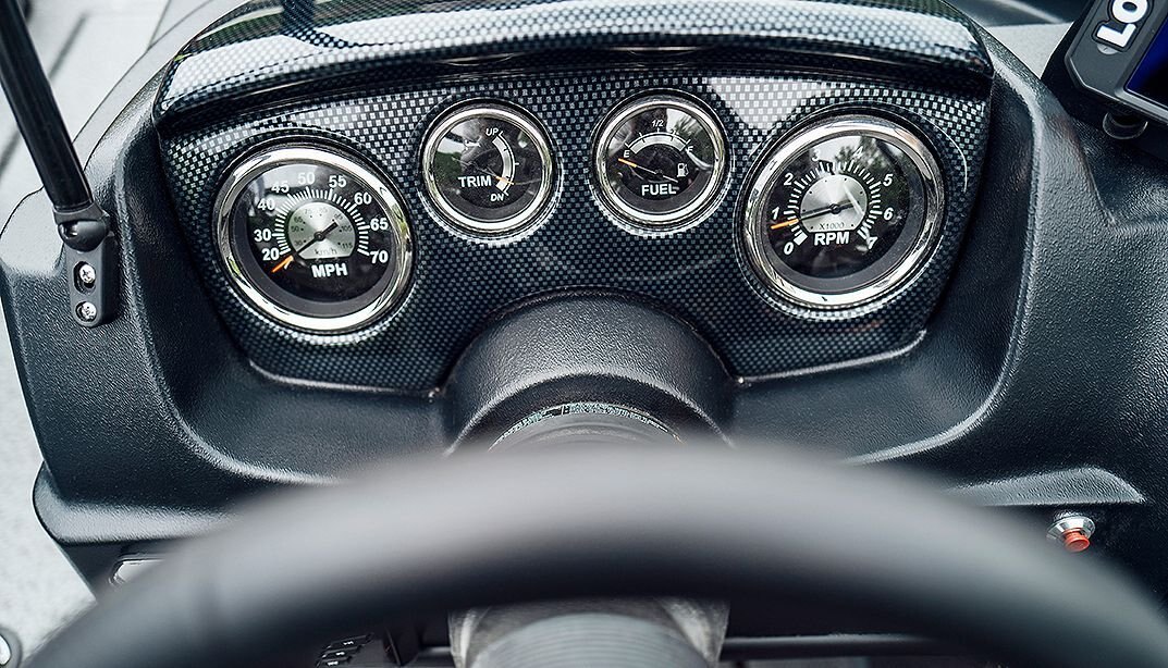 Tach, speed, fuel & trim gauges w/chrome bezels