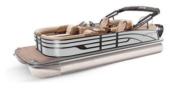 The SS pontoon features a stylish fence with optional two-tone graphics. The interior has premium fabrics with 4 complimentary vinyl colors and a debossed quilted pattern in the storage alcoves. Capped off by comfortable helm chairs for the captain and first mate.