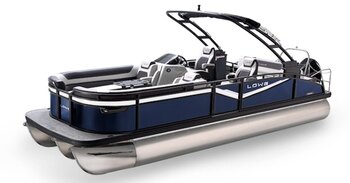The SS pontoon features a stylish fence with optional two-tone graphics. The interior has premium fabrics with 4 complimentary vinyl colors and a debossed quilted pattern in the storage alcoves. Capped off by comfortable helm chairs for the captain and first mate.