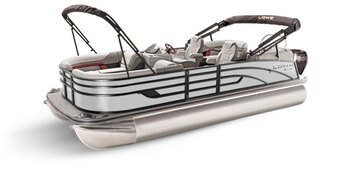 The SS pontoon features a stylish fence with optional two-tone graphics. The interior has premium fabrics with 4 complimentary vinyl colors and a debossed quilted pattern in the storage alcoves. Capped off by comfortable helm chairs for the captain and first mate.
