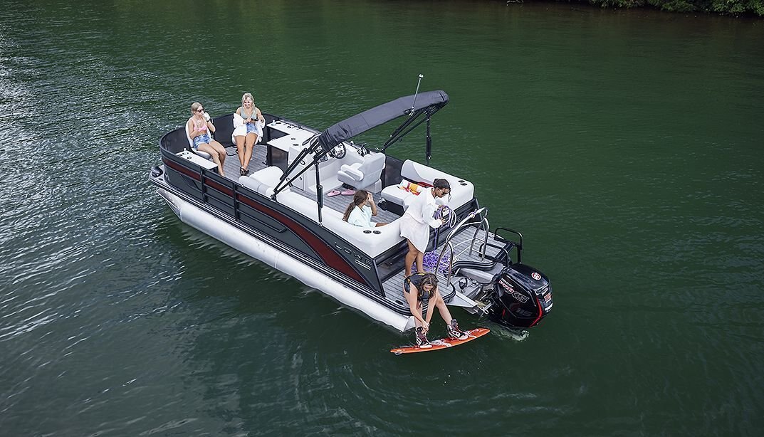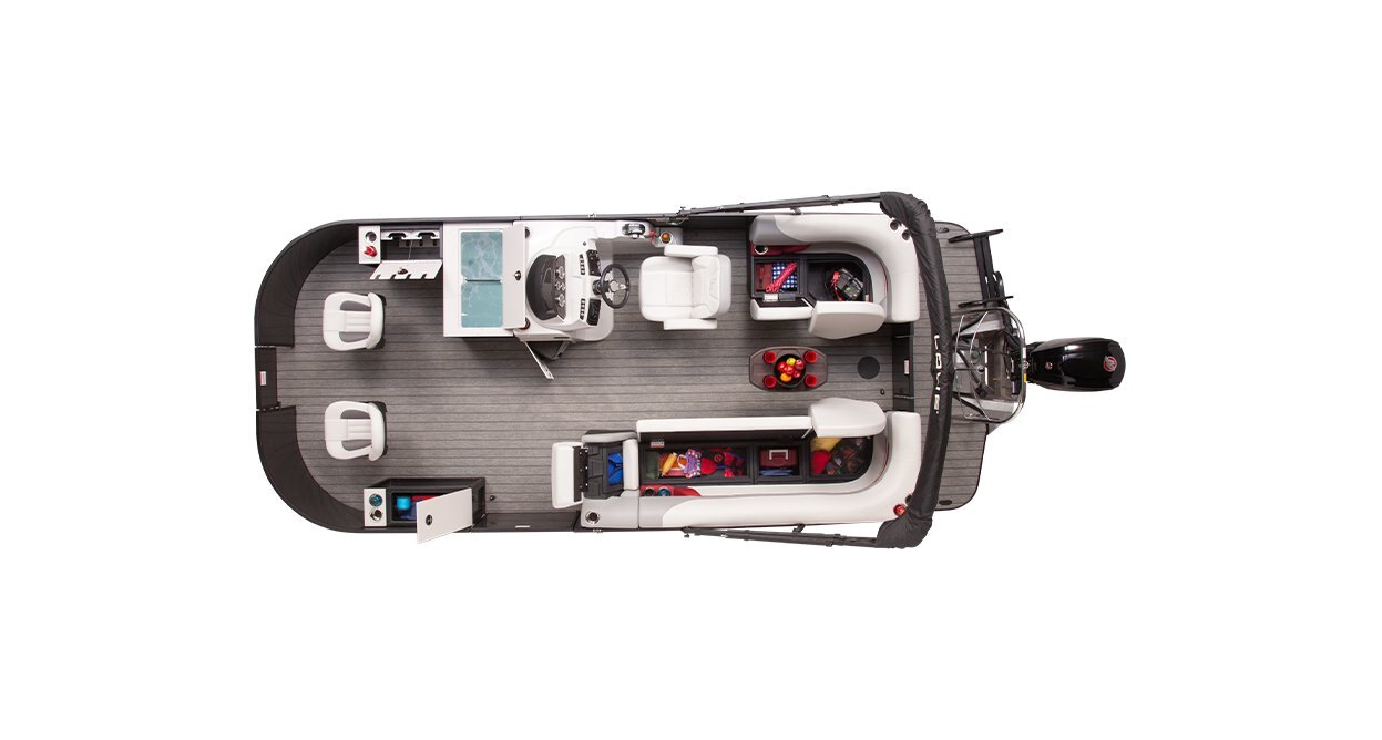 Our SS pontoons feature handsome fiberglass consoles with GPS gauges, a premium chrome steering wheel with a comfortable and confident rubber wheel, and ready access to all the captain's electronics.