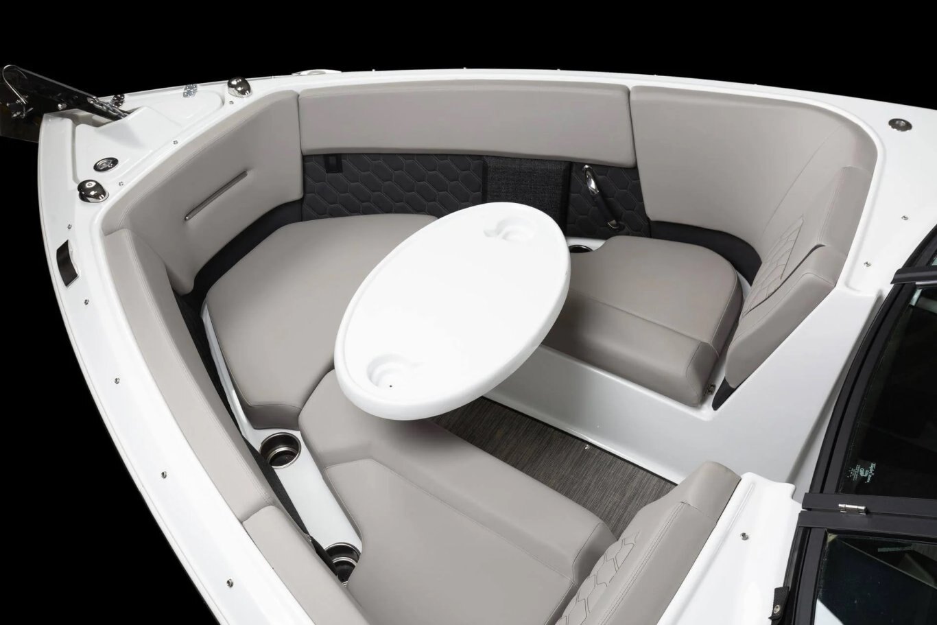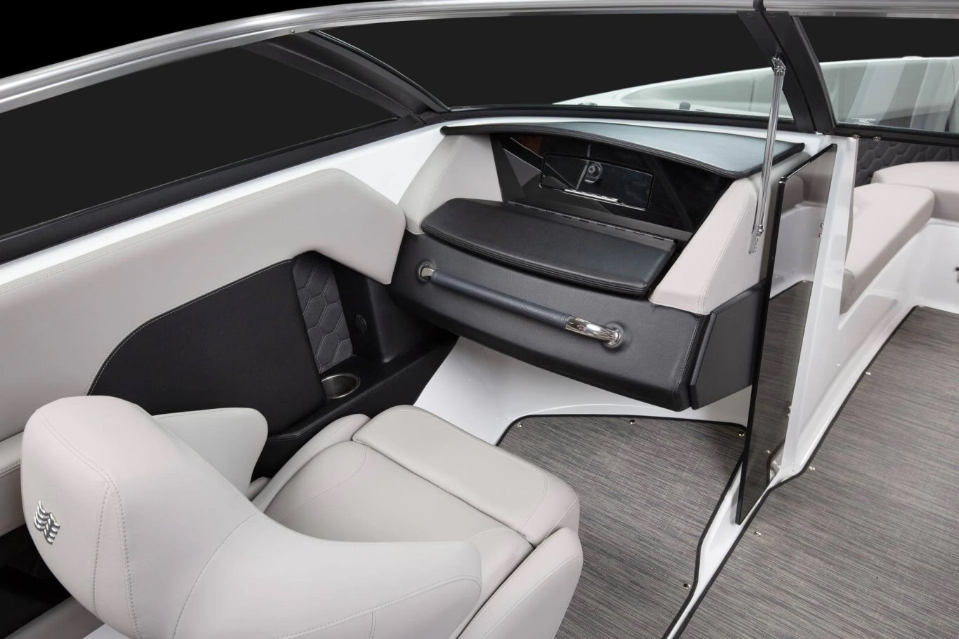 Every detail of the H4 has been meticulously designed to embody a premium aesthetic. From soft, grippy swim platform mats to woven cockpit flooring, these finishing touches exude refinement. True to Four Winns' legacy of superior craftsmanship, the H4 features intricate hand-sewn stitching, gleaming metal accents, and plush foam for unparalleled quality and comfort. Monochromatic color schemes introduce a fresh, streamlined look, while high-end materials like cool-touch vinyl-wrapped handles, durable upholstery, and padded bow walls blend durability with effortless style.