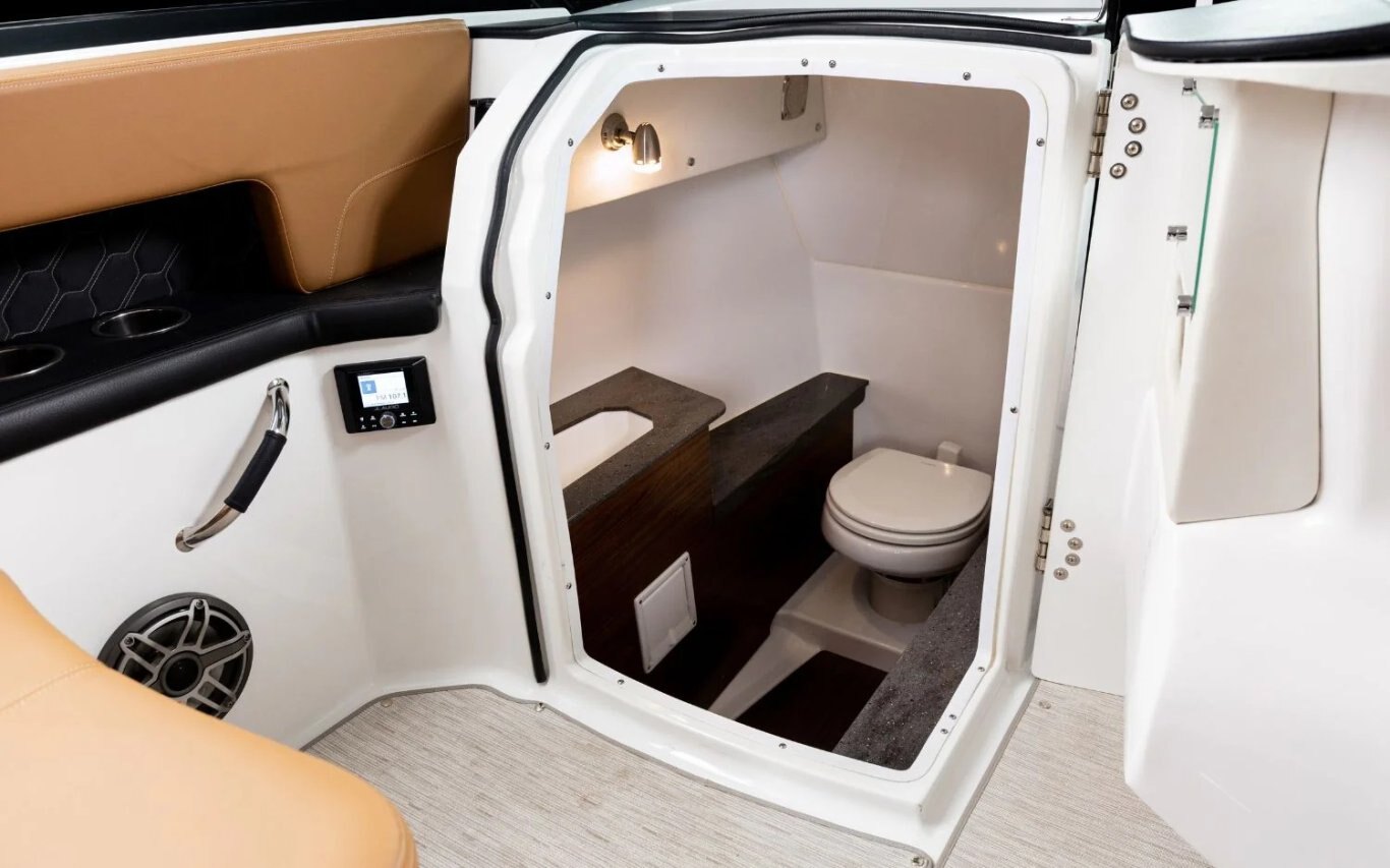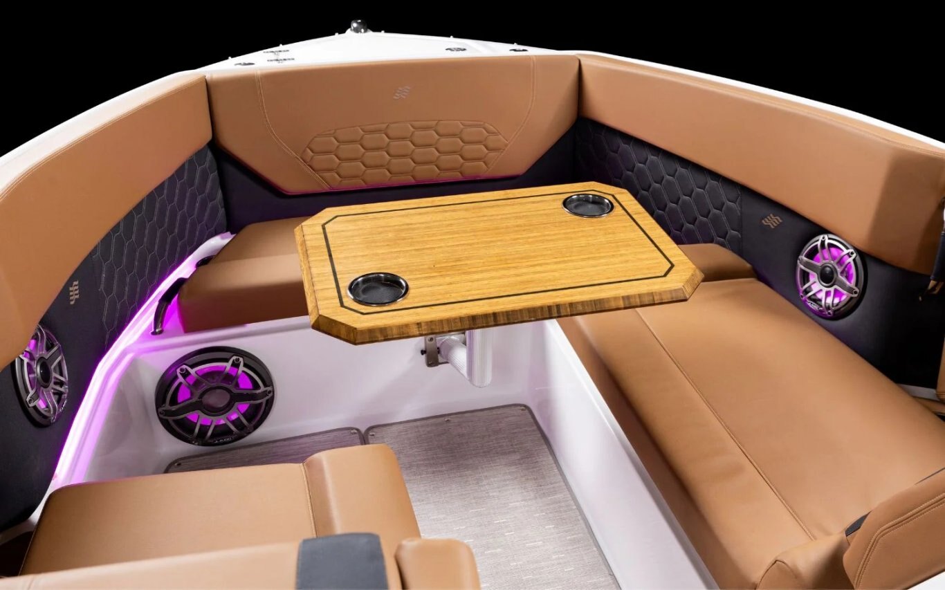 Immerse yourself in the sophistication of the H9 Outboard. This model features Elegant Side Terraces, a fold-down backrest for sunbathing, and various customizable features. With its sleek design, premium handsewn upholstery, and unparalleled comfort and style, the H9 OB is designed to impress. Navigate effortlessly with enhanced cockpit controls and enjoy the convenience of multiple storage compartments and a built-in galley. Elevate your boating experience with the H9 OB.