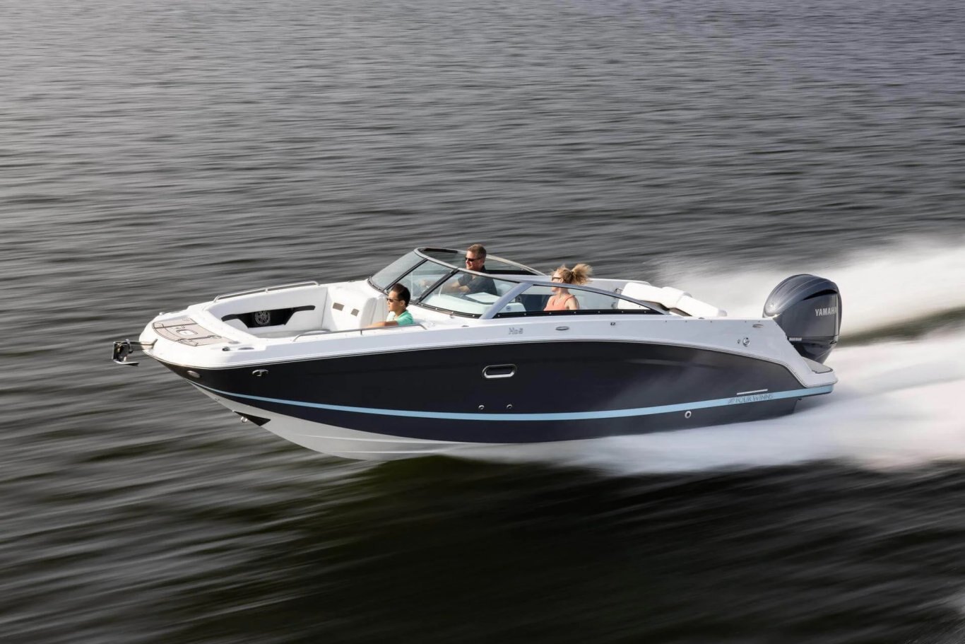 The U-shaped cockpit seating allows for spacious relaxation, while built-in coolers ensure your refreshments are always within reach. With a walk-thru transom and attention to every detail, this boat delivers an elevated experience on the water.