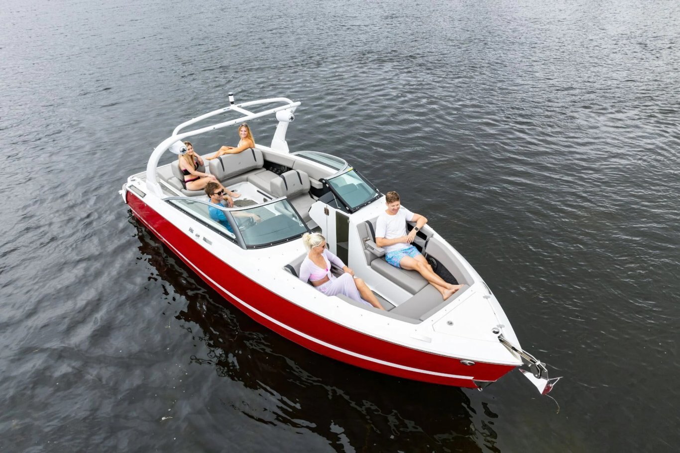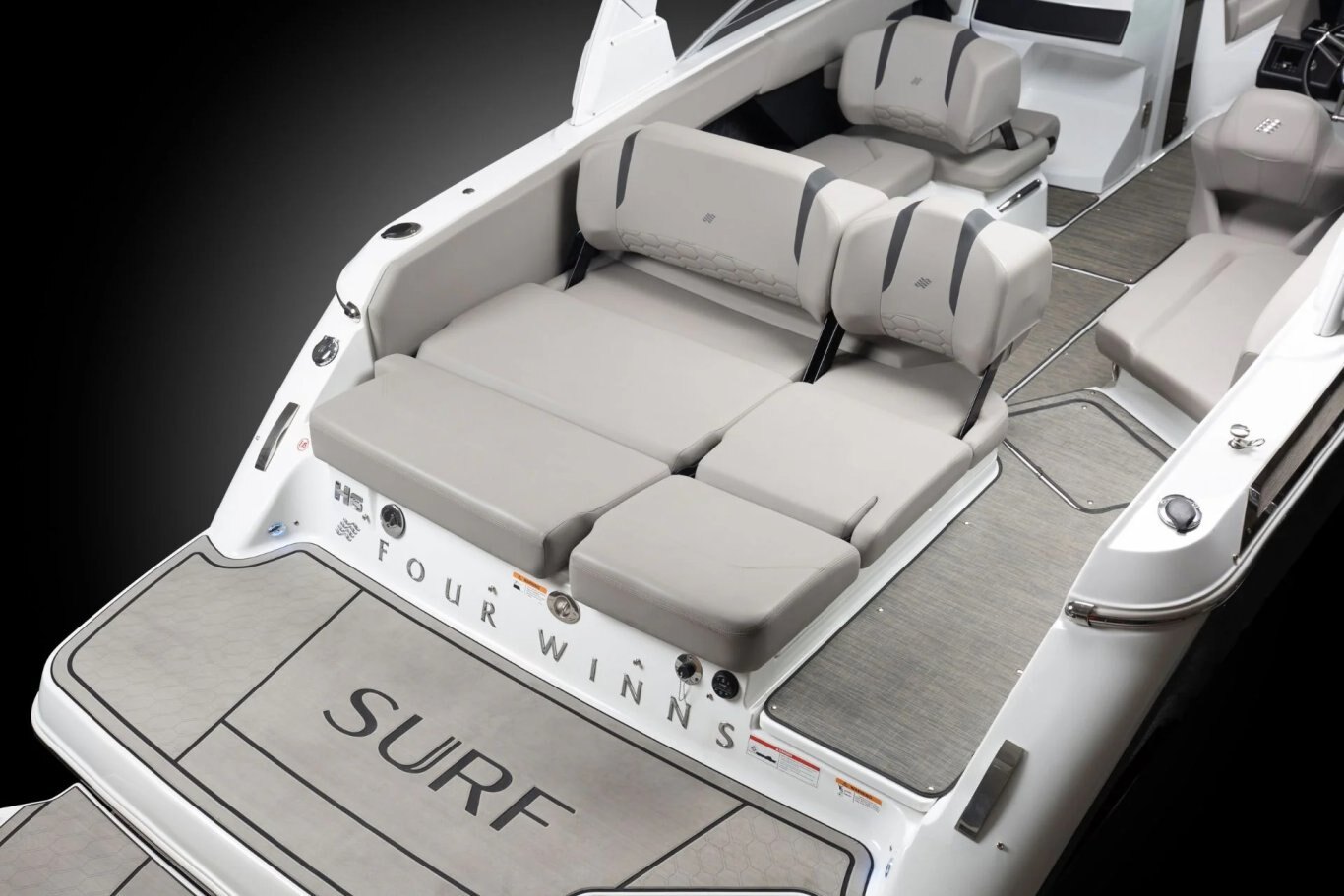 As the largest in the Surf lineup, the H6 Surf boasts refined interior styling, a generous beam, and deep seating that welcomes up to 14 onboard. Premium vinyls, ergonomic seating, and upscale finishes create an inviting space whether you’re prepping gear or kicking back post-session. An expansive swim platform and versatile aft lounge make transitions between surf and sun seamless, while thoughtful storage throughout keeps everything in place.