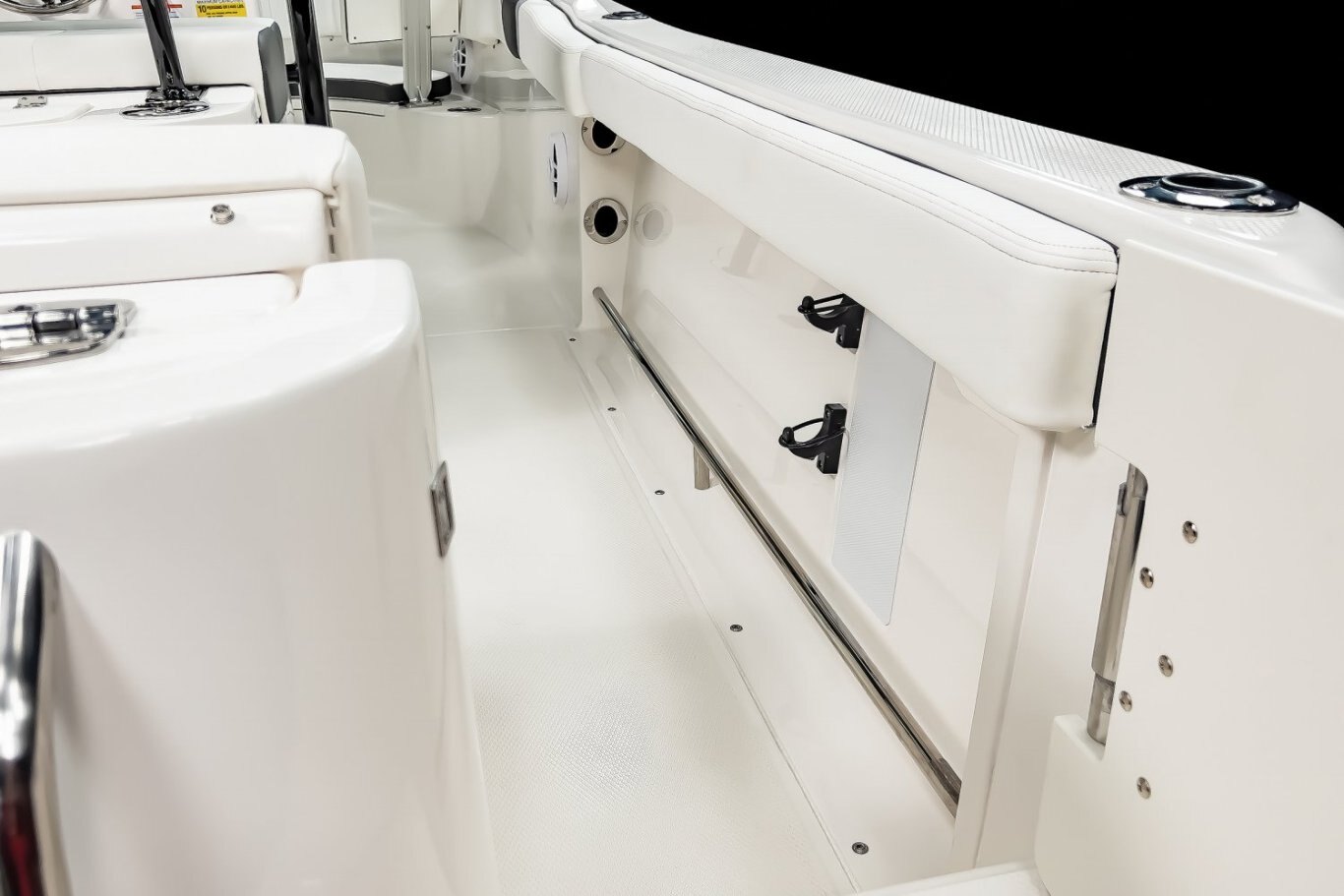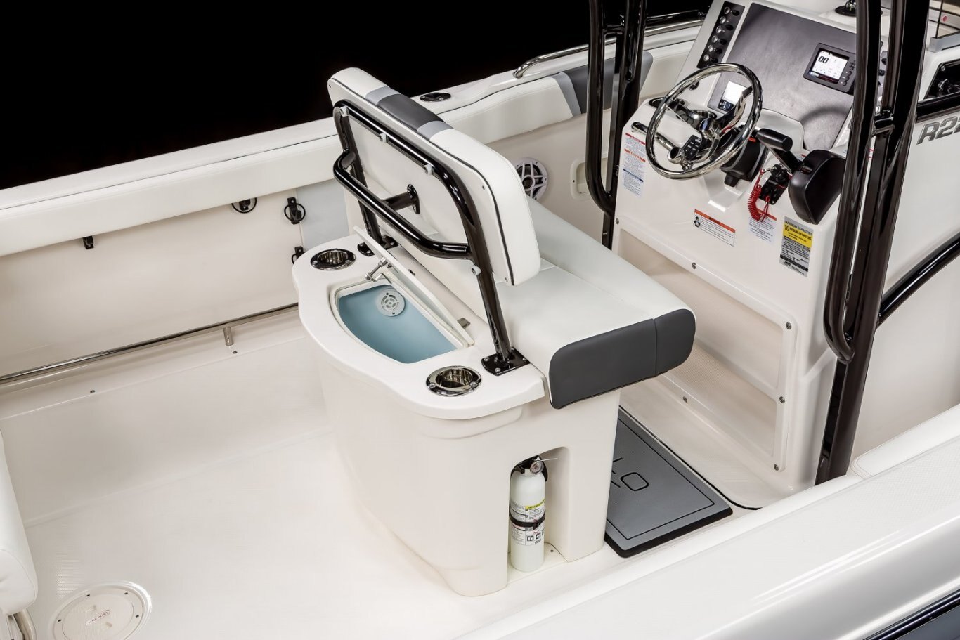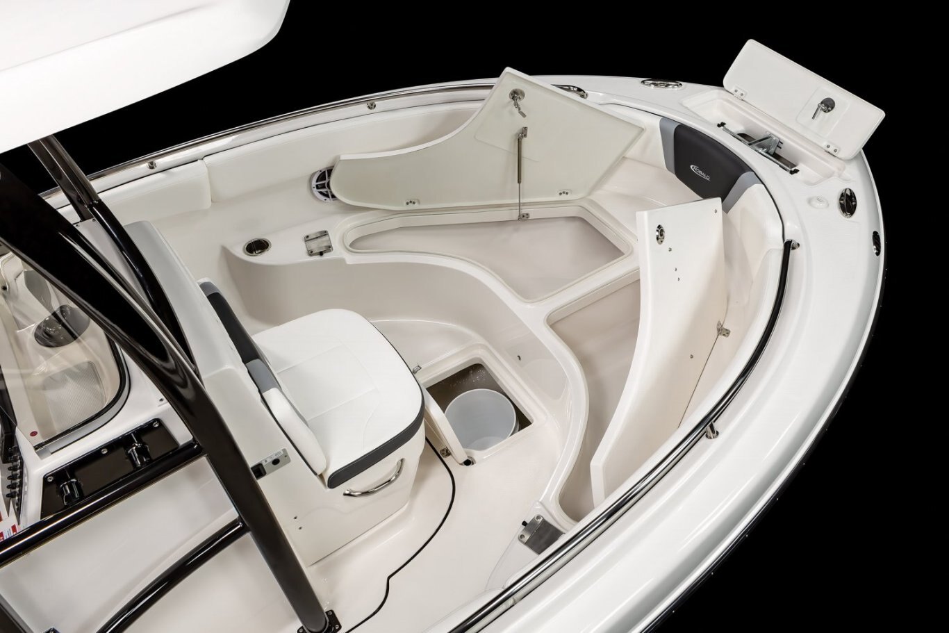 The Legacy ContinuesIt had to happen. Parlaying the game-changing success of the R180 and the R200, Robalo takes its center console offerings up a notch with the R222. The R222 is sold at a nationally advertised price. The keyword here is more. More centerline length. More storage space. More ride comfort. More seaworthiness. More fishing features. The only place where the new R222 proudly comes up short is its Reel Deal price tag. Key fishing features include twin 30-gallon fish boxes that can either keep your catch fresh or serve as storage areas. A 15-gallon livewell with LED lighting and a blue gelcoat finish is conveniently positioned under the standard leaning post. |