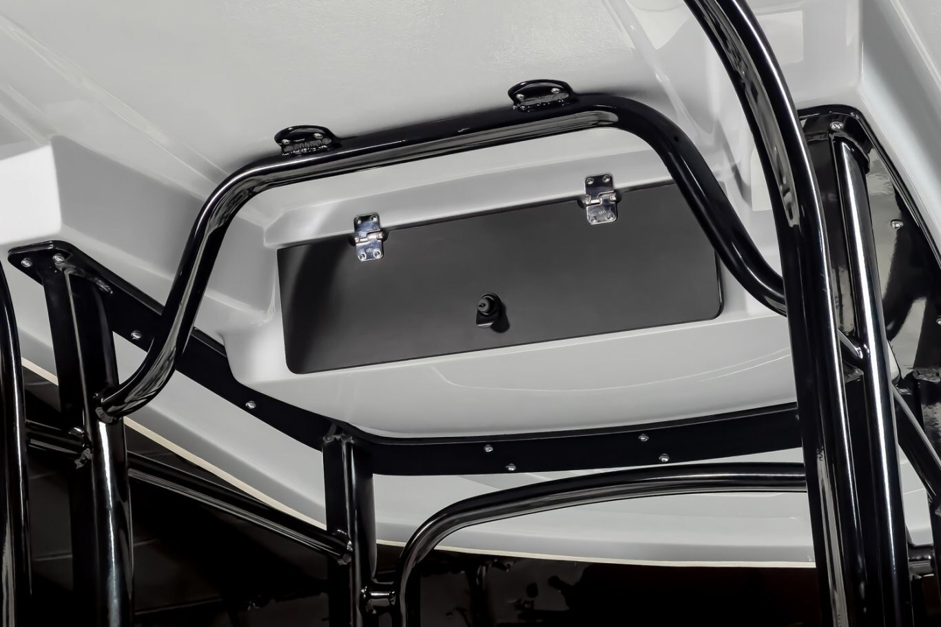 Optional FeaturesFiberglass Leaning Post with Livewell and Backrest - Black Powder Coated |