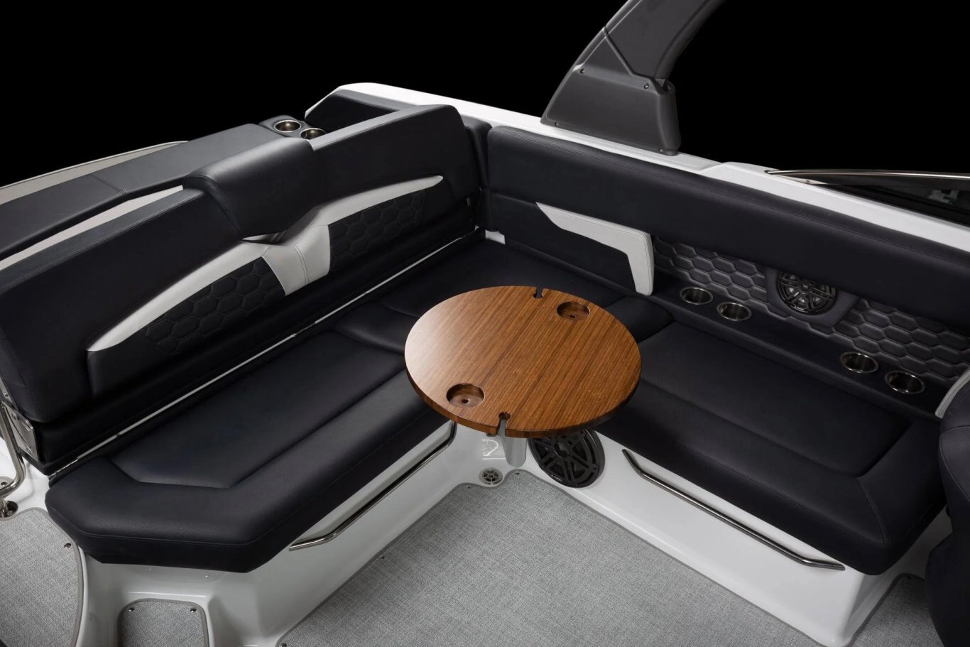 Ease into uninterrupted luxury on the water with plush bucket seats and comfortable handstitched cushions that seat all your family and friends, paired thoughtfully with expansive storage and a fully enclosed head included standard.