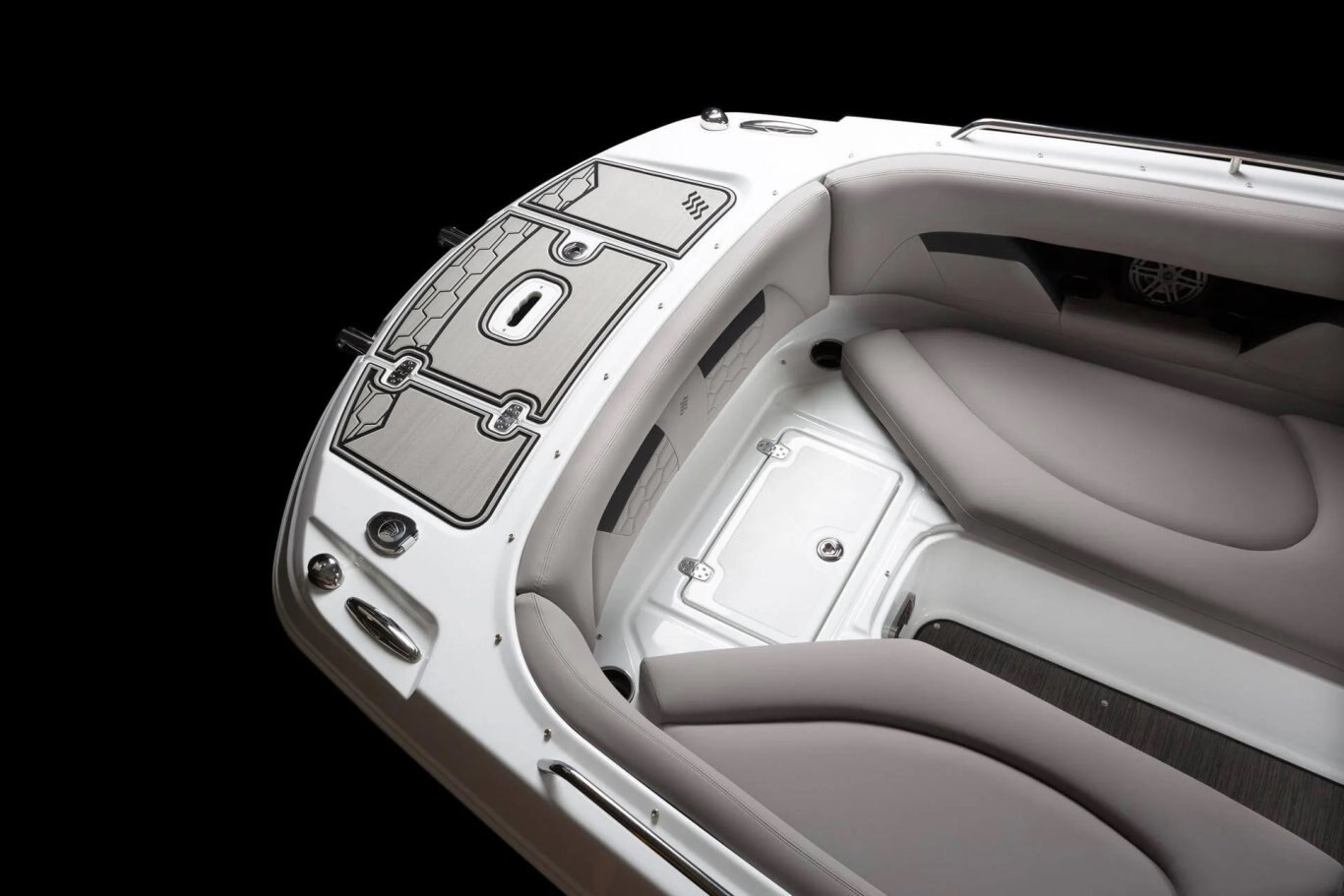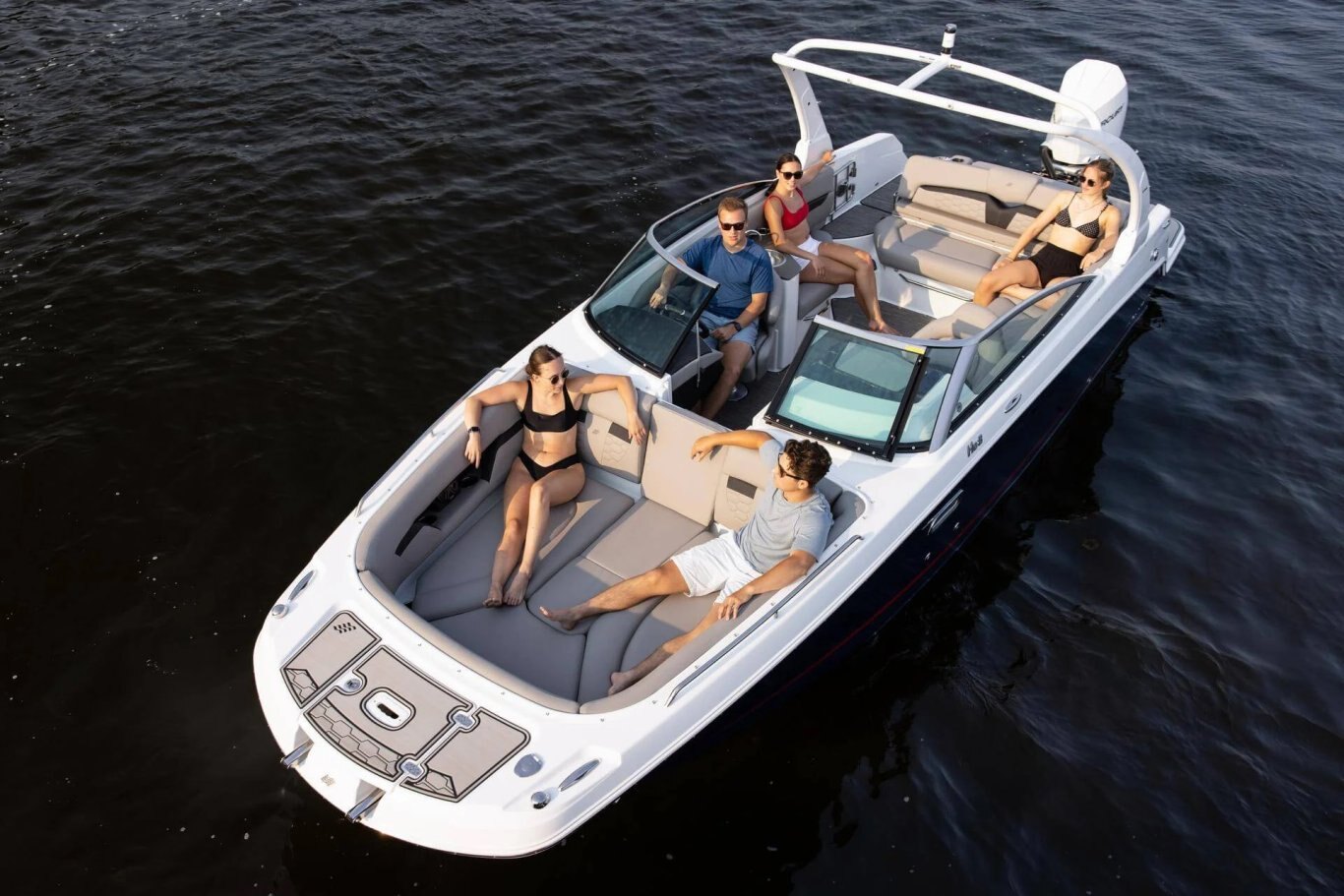 Immerse yourself in uninterrupted luxury on the water with plush bucket seats and comfortable handstitched cushions that accommodate all your family and friends. Thoughtfully designed, the boat features expansive storage and a fully enclosed head, all included as standard.