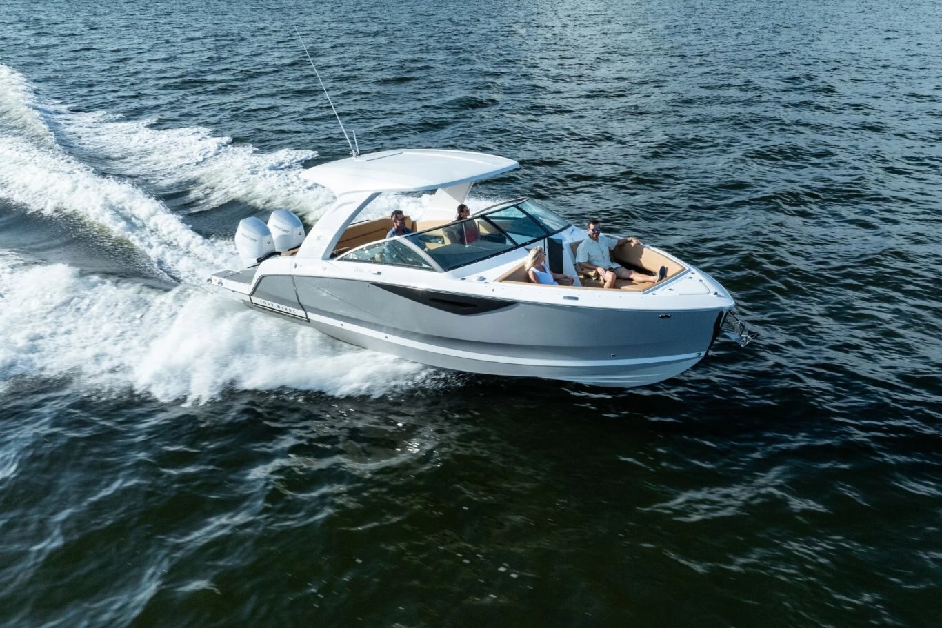 This model embodies the perfect balance between comfort and agility, whether for sporty outings or laid back afternoons, thanks to its spacious aft platform and versatile engine options to match your on-the-water lifestyle.