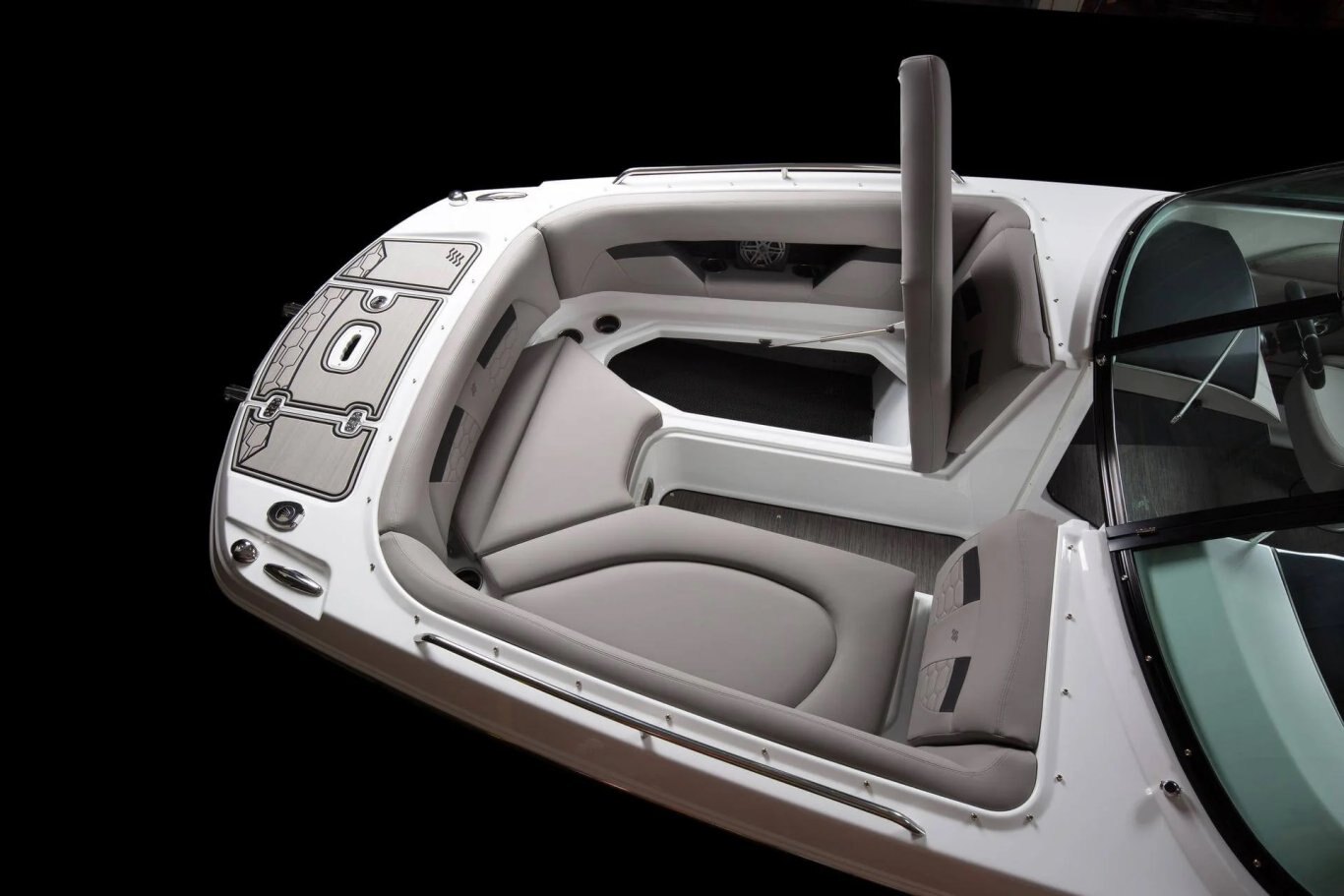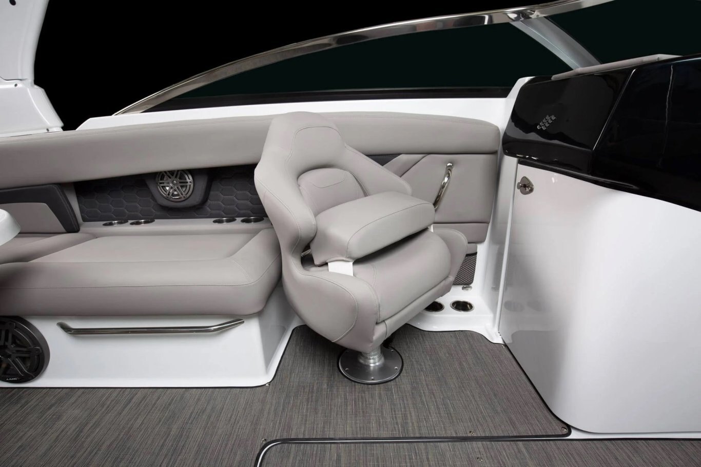 Immerse yourself in uninterrupted luxury on the water with plush bucket seats and comfortable handstitched cushions that accommodate all your family and friends. Thoughtfully designed, the boat features expansive storage and a fully enclosed head, all included as standard.