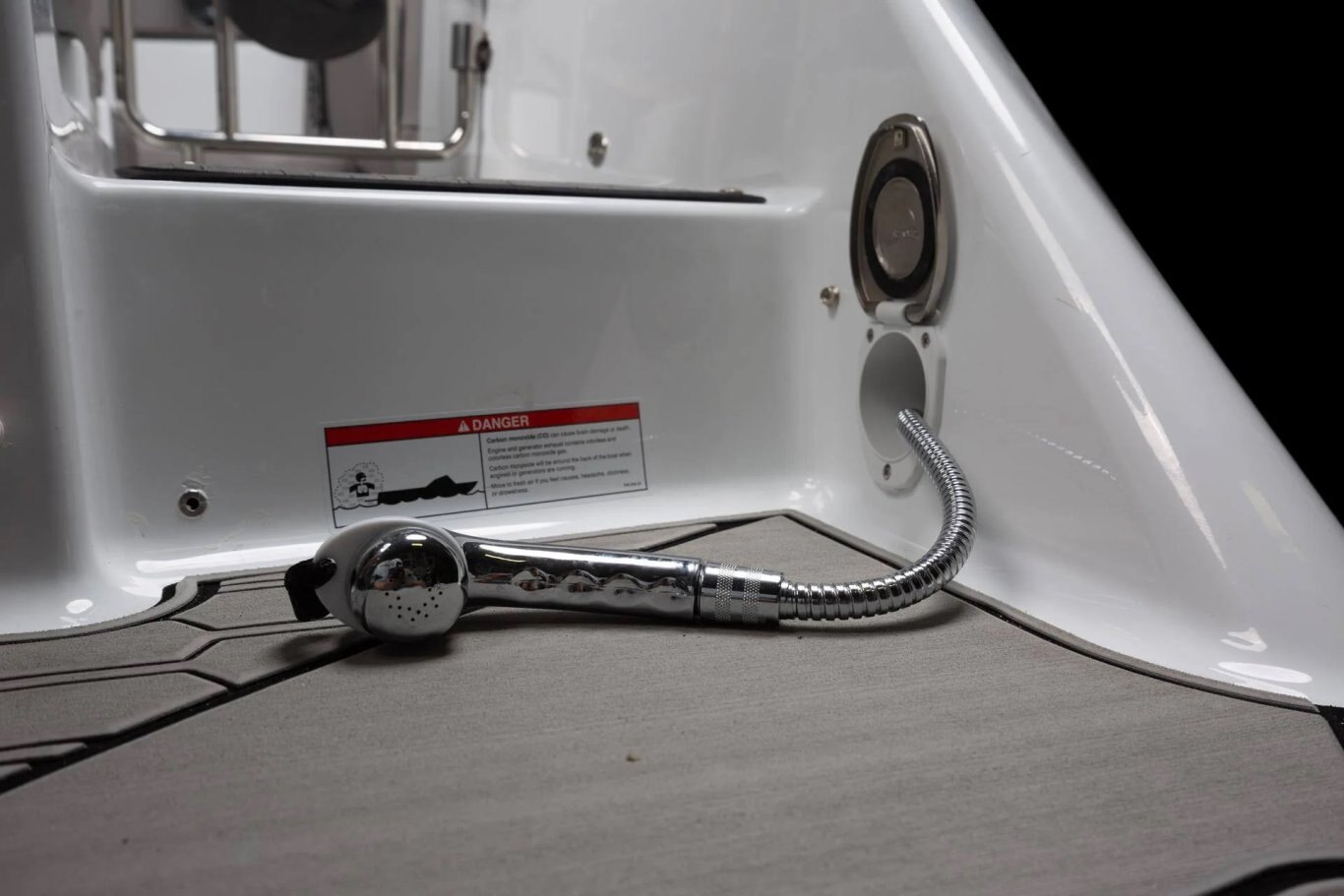 • Storage, bow, behind backrest at helm