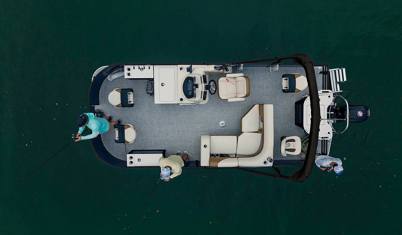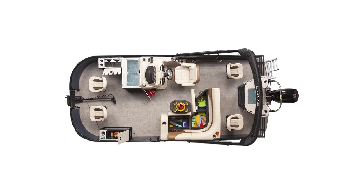 Our SS pontoons feature handsome fiberglass consoles with GPS gauges, a premium chrome steering wheel with a comfortable and confident rubber wheel, and ready access to all the captain's electronics.