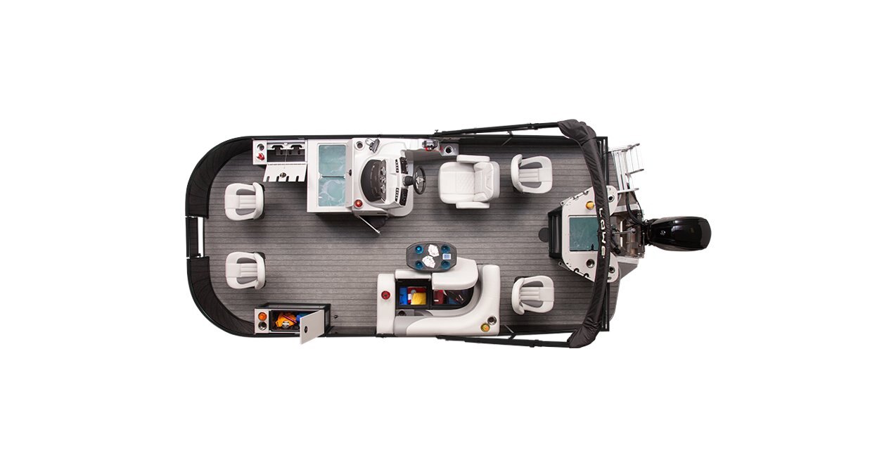 Our SS pontoons feature handsome fiberglass consoles with GPS gauges, a premium chrome steering wheel with a comfortable and confident rubber wheel, and ready access to all the captain's electronics.
