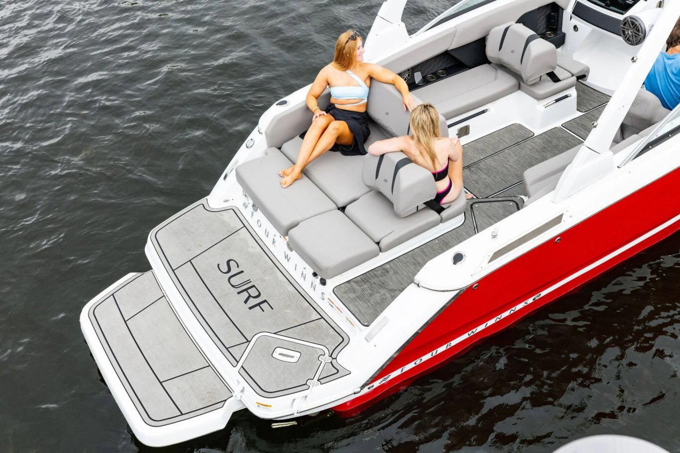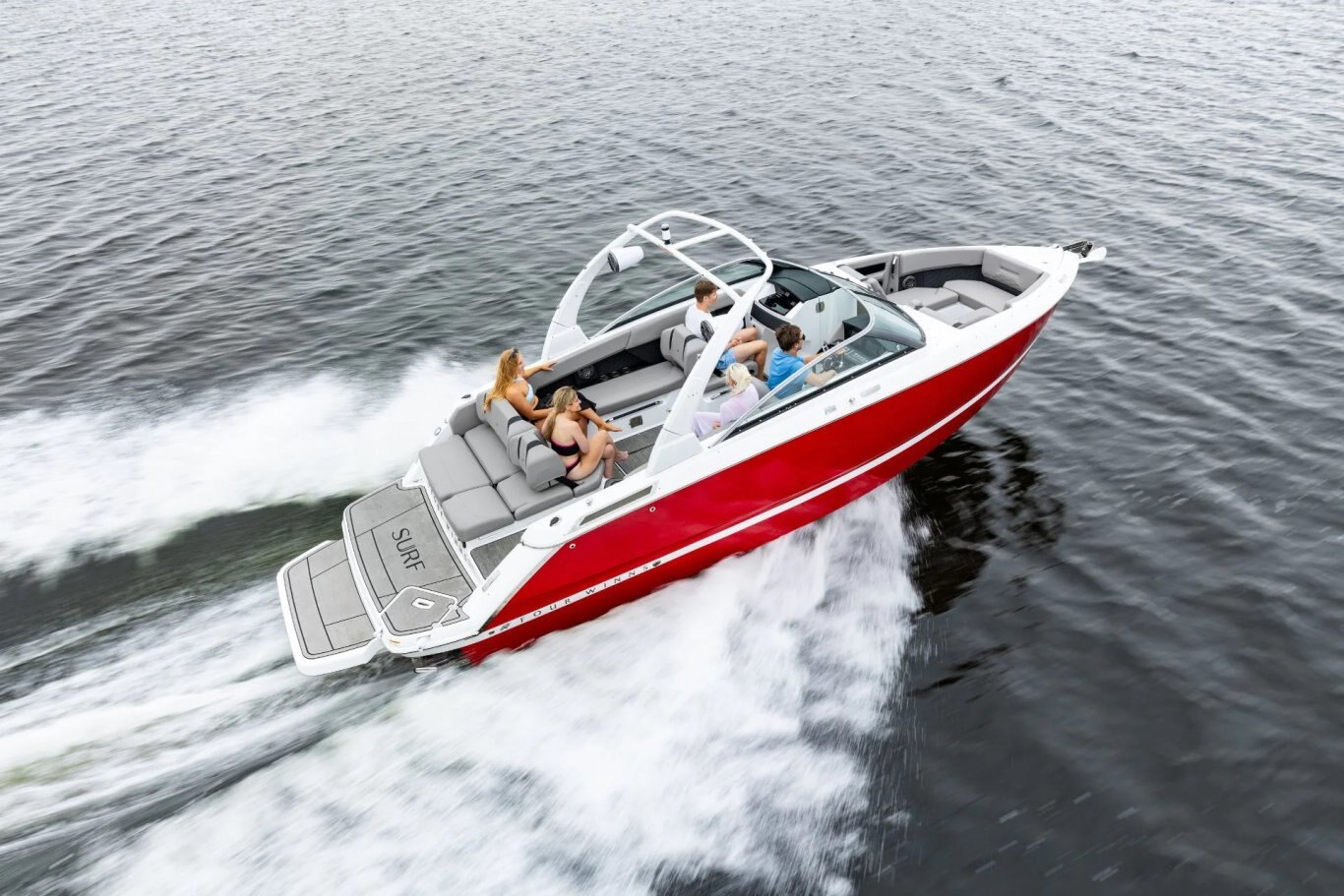 As the largest in the Surf lineup, the H6 Surf boasts refined interior styling, a generous beam, and deep seating that welcomes up to 14 onboard. Premium vinyls, ergonomic seating, and upscale finishes create an inviting space whether you’re prepping gear or kicking back post-session. An expansive swim platform and versatile aft lounge make transitions between surf and sun seamless, while thoughtful storage throughout keeps everything in place.