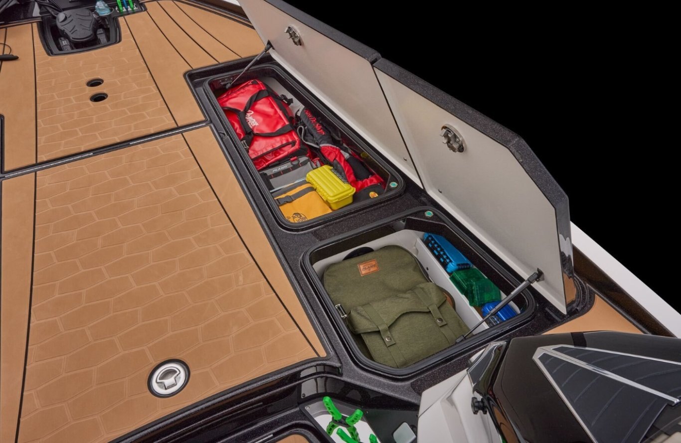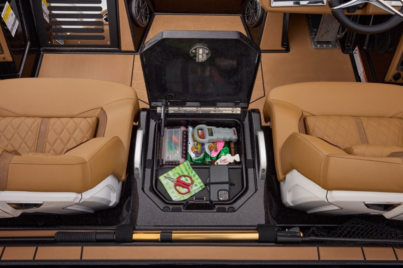 • Integrated center-storage rod & tackle management system