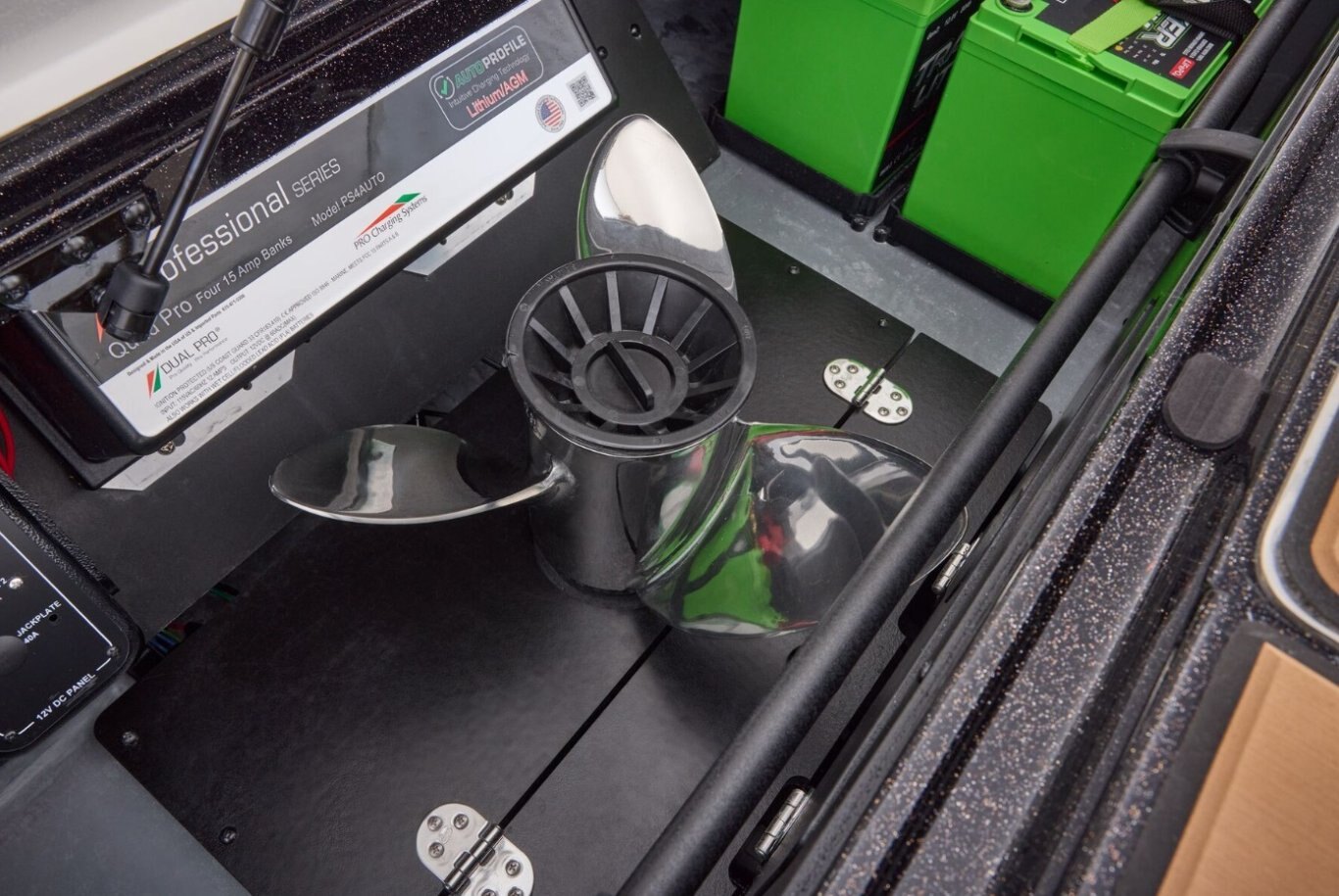 • Dual Pro™ on-board 15A x 4 bank charger w/ auto-detect technology & remote charging port