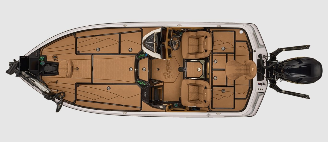 At the helm, innovation takes center stage with the fully remastered console featuring the Ranger RIDE touchscreen interface, digital switching for total control of your trolling motor, outboard, lighting, and security. A leather-wrapped steering wheel connects you to a computer-scanned hull delivering precision handling and an unparalleled ride. This is more than a bass boat—it’s the pinnacle of design, performance, and prestige.