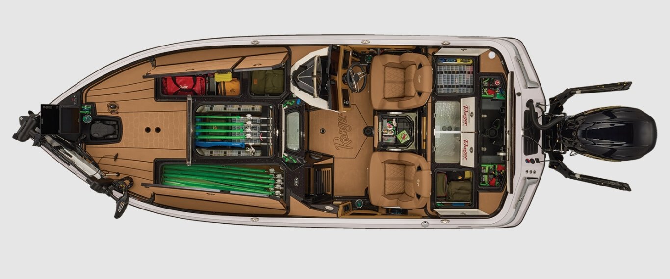 • Ranger Echelon™ Rod Storage System - 3-tiered port & 2-tiered starboard rod lockers