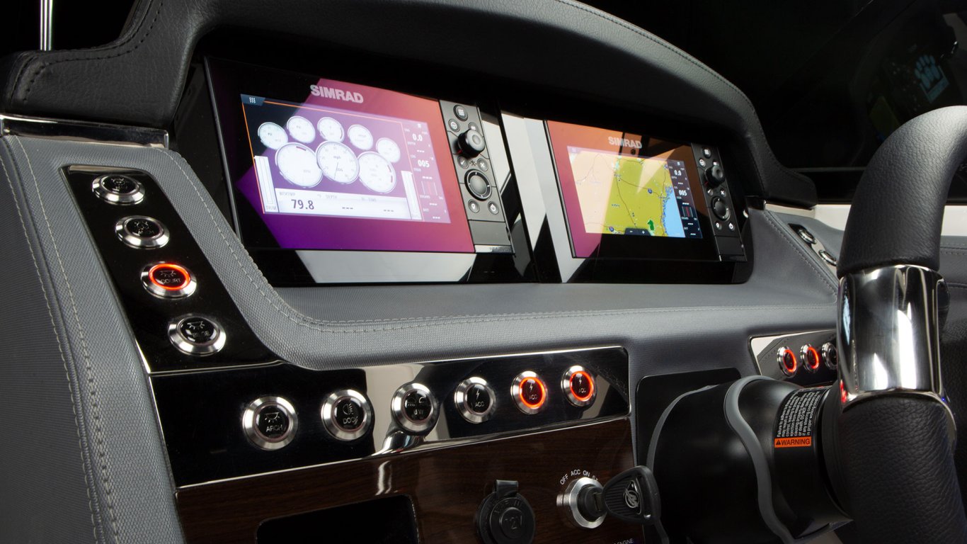 Standard in the 307 SSX is the dual touch screen Simrad NSS7 chartplotter/multifunction displays. Allowing you to navigate while monitoring engine functions seamlessly bringing your on-water navigation experience to new heights.