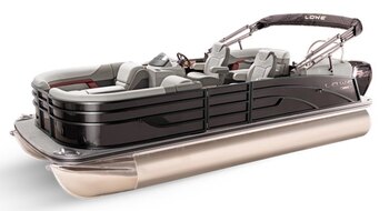 The SS pontoon features a stylish fence with optional two-tone graphics. The interior has premium fabrics with 4 complimentary vinyl colors and a debossed quilted pattern in the storage alcoves. Capped off by comfortable helm chairs for the captain and first mate.