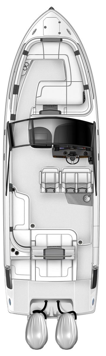 The 280 OSX is packed with premium features that make the boat feel larger than life. A double-wide bowrider seat, hardtop with skylight, and day cabin with an electric toilet are amenities that you won't want to live without after you try them.