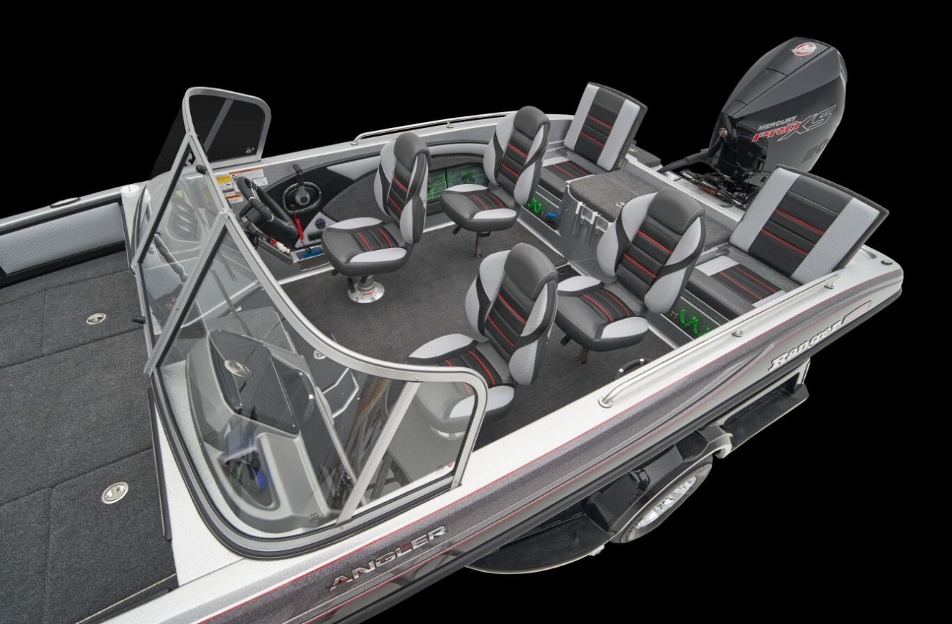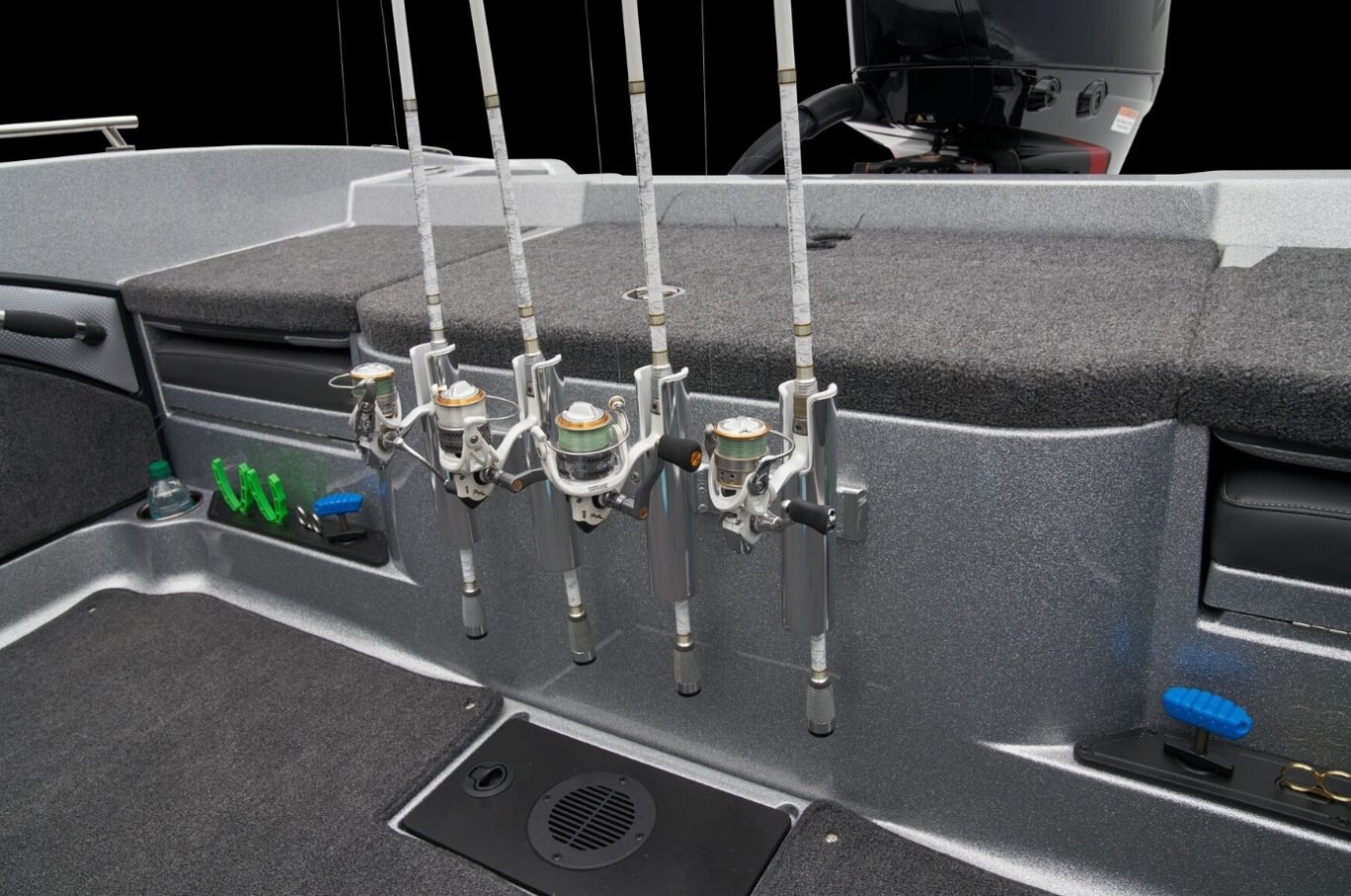 Inside you’ll find a wide-open cockpit that can be perfectly tailored to be a hardcore fishing machine or a smooth, easy-riding family fun vessel ready for tubing, skiing, and the like. A full complement of gear of any stripe conceals within the 1880’s clever storages from bow to stern. Integrated tool and drink holders, hand-built seats, stainless-steel cleats, and hardware add class and convenience to this capable performer.