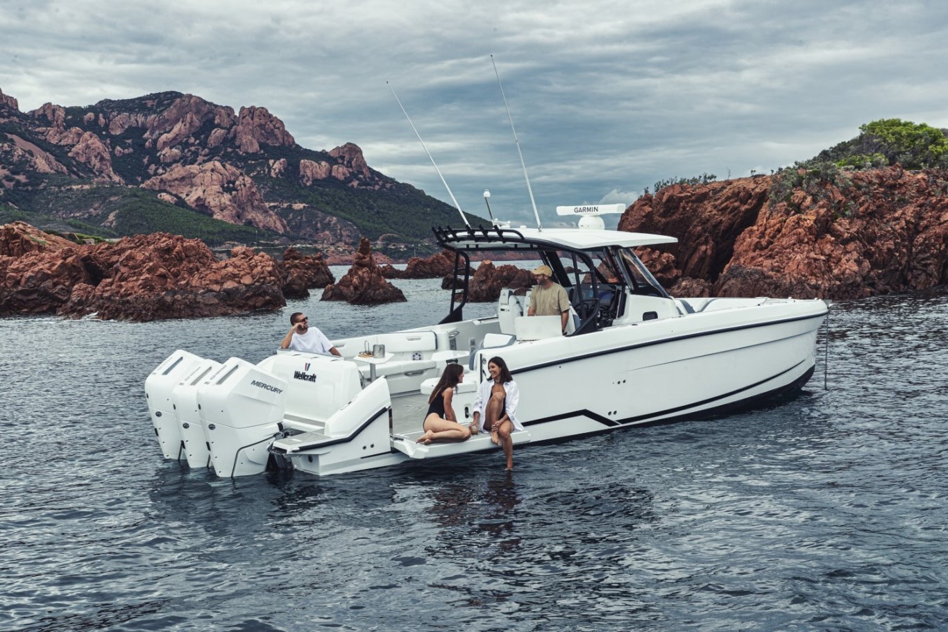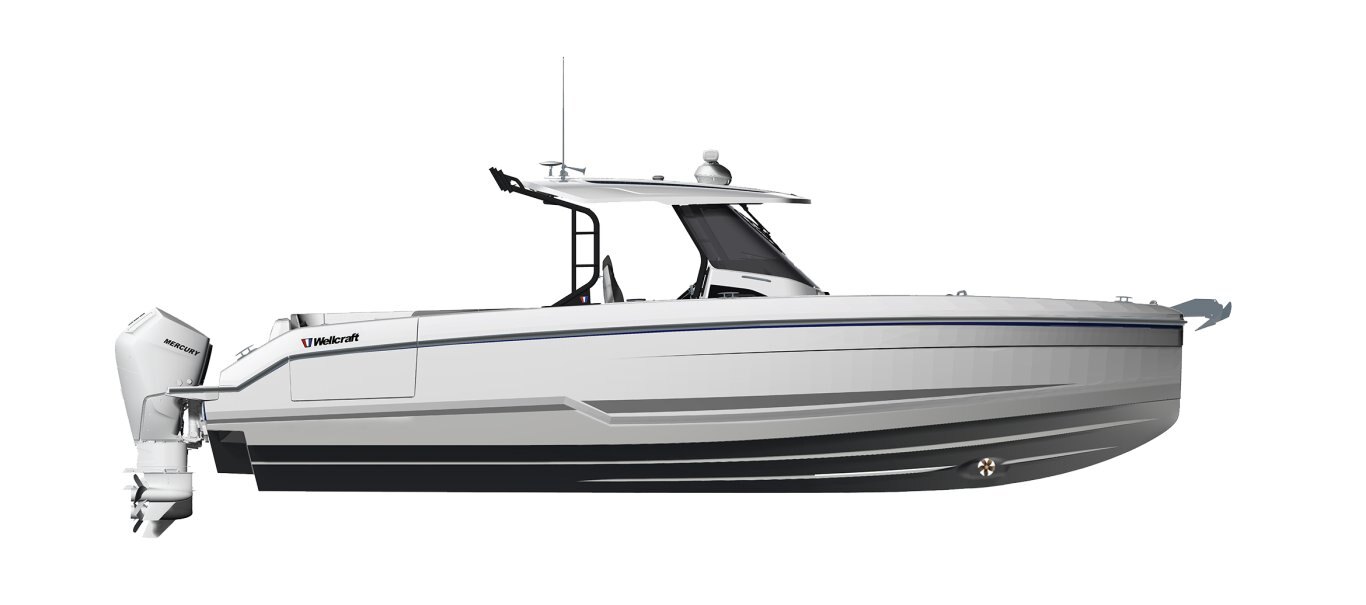 Combining spacious social areas, unrivalled performance, the boat is also packed with entertainment features for thrill-seekers. At 38’4” (11.69m), the Wellcraft 38 T-Top boasts unparalleled seating capacity while the innovative swim platform offers unmatched water-access. Equipped with a top-mounted tow point and ample storage spaces, it is the ideal center console for watersport enthusiasts. This offshore performer also combines exceptional power with optimized weight, delivering unrivalled speed and agility.