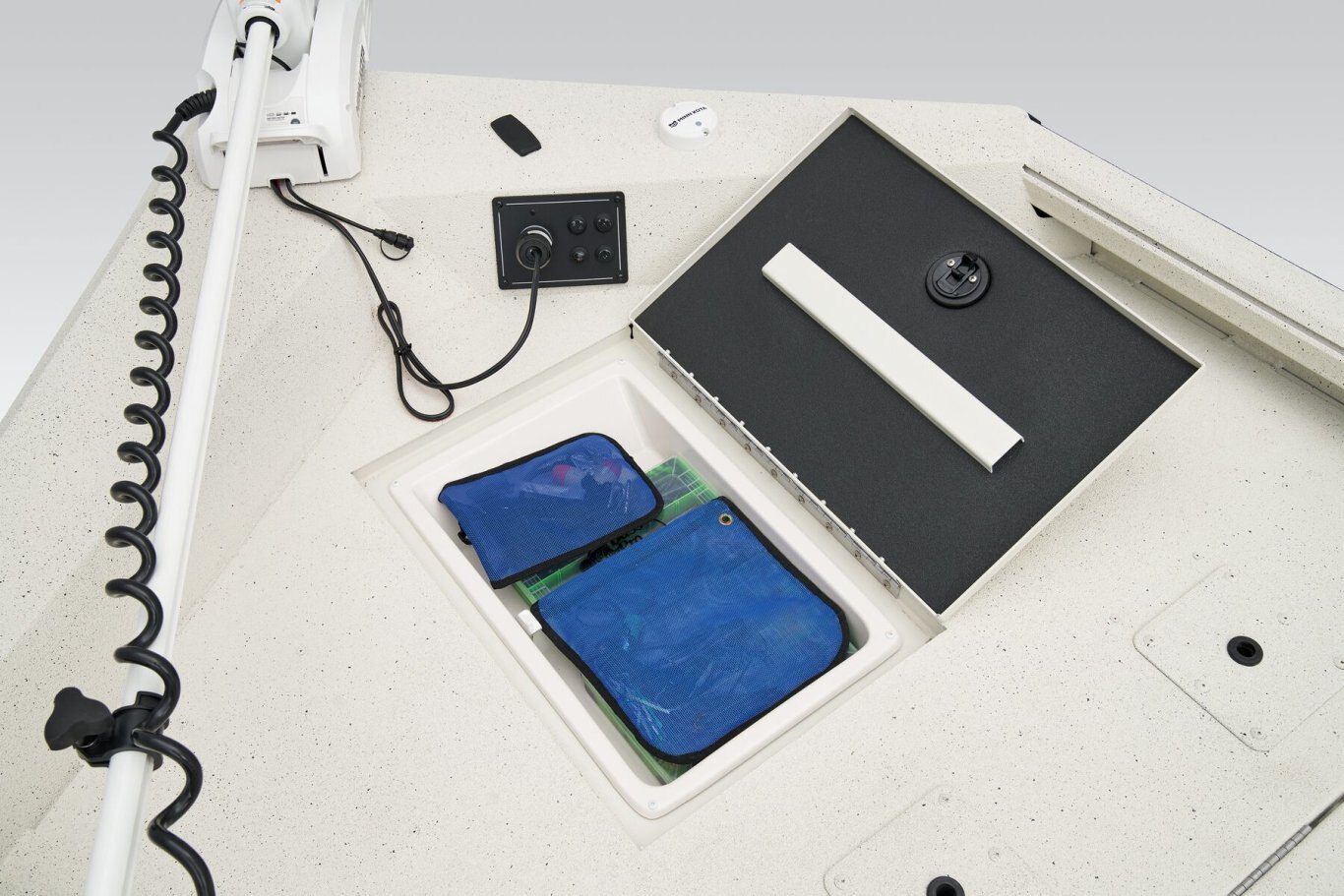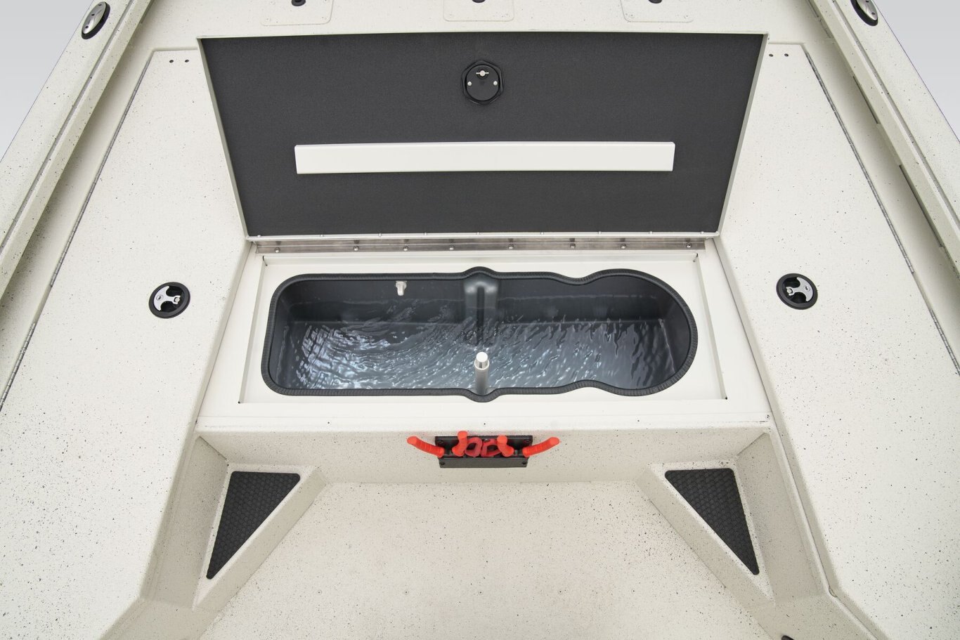 • Recirculating aerated livewell on front deck