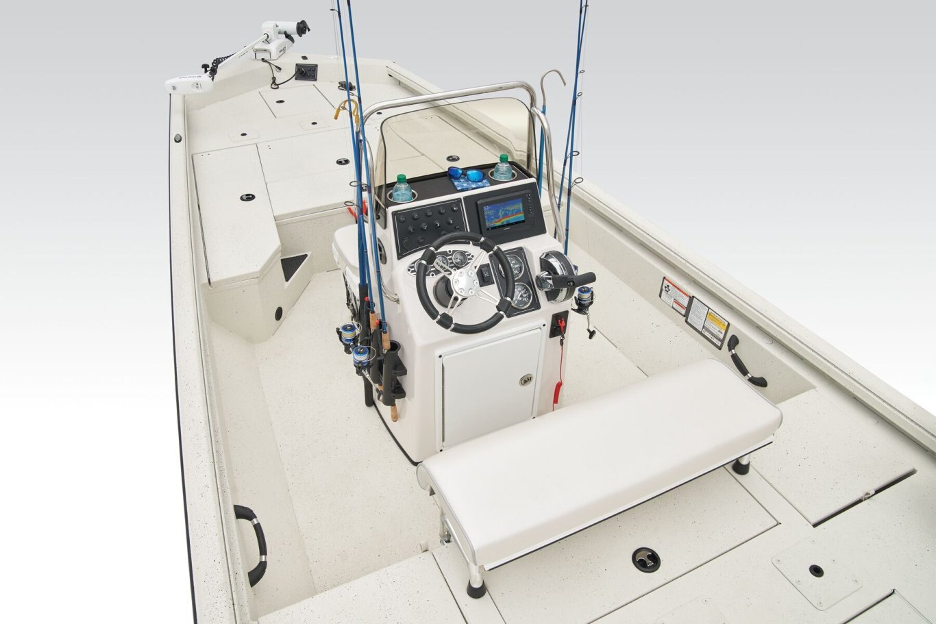 • Three-across seat pedestal locations on front and rear decks